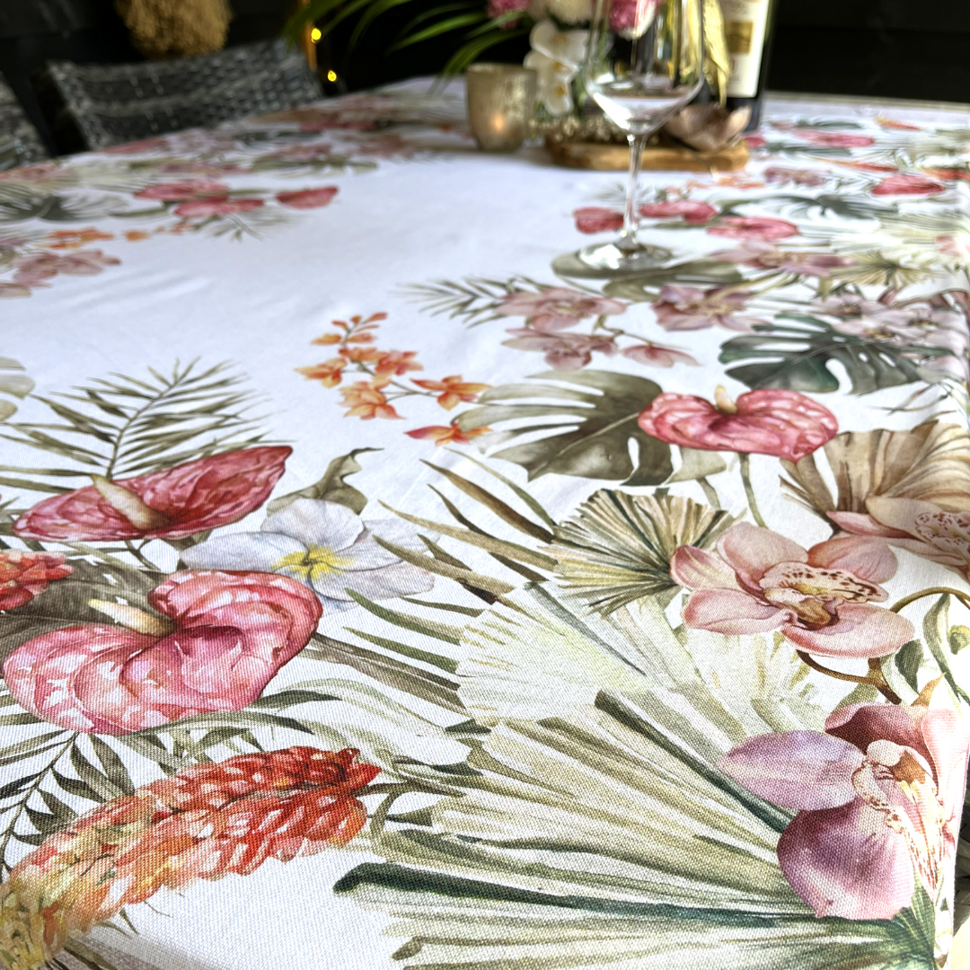 Cette magnifique nappe apporte le soleil de la côte amalfitaine jusque dans votre jardin. Avec son motif citron peint à la main, ses feuilles luxuriantes et ses fleurs gracieuses, elle respire le charme et l'hospitalité à l'italienne. Confectionnée en 100 % coton de haute qualité, elle est à la fois naturelle et résistante, tout en respirant l'élégance et la fraîcheur estivale.