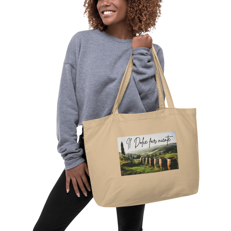 Voel de zon op je huid, de geur van verse kruiden, en het tijdloze gevoel van la dolce vita... Deze ruime biologisch katoenen shopper is niet zomaar een tas – het is een bewuste levenskeuze. Perfect voor jouw drukke dagen vol boodschappen, werk of reizen, en even stijlvol als praktisch.