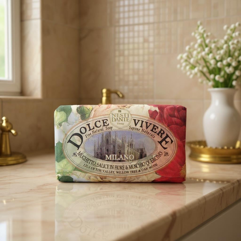Nesti Dante Dolce Vivere – Milano is méér dan zomaar een zeep. Het is een ode aan puurheid, rust en natuurlijke schoonheid. Deze handgemaakte zeep, vervaardigd volgens eeuwenoude Italiaanse traditie, brengt het zonovergoten Toscaanse platteland rechtstreeks naar je badkamer. Met 100% natuurlijke ingrediënten uit Toscane zorgt deze zeep voor een zachte, gevoede huid én een moment van ontspanning voor je geest.