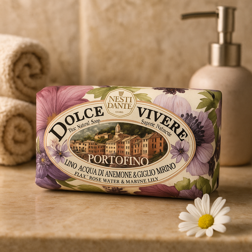 Nesti Dante Dolce Vivere – Portofino is méér dan zomaar een zeep. Het is een ode aan puurheid, rust en natuurlijke schoonheid. Deze handgemaakte zeep, vervaardigd volgens eeuwenoude Italiaanse traditie, brengt het zonovergoten Toscaanse platteland rechtstreeks naar je badkamer. Met 100% natuurlijke ingrediënten uit Toscane zorgt deze zeep voor een zachte, gevoede huid én een moment van ontspanning voor je geest.