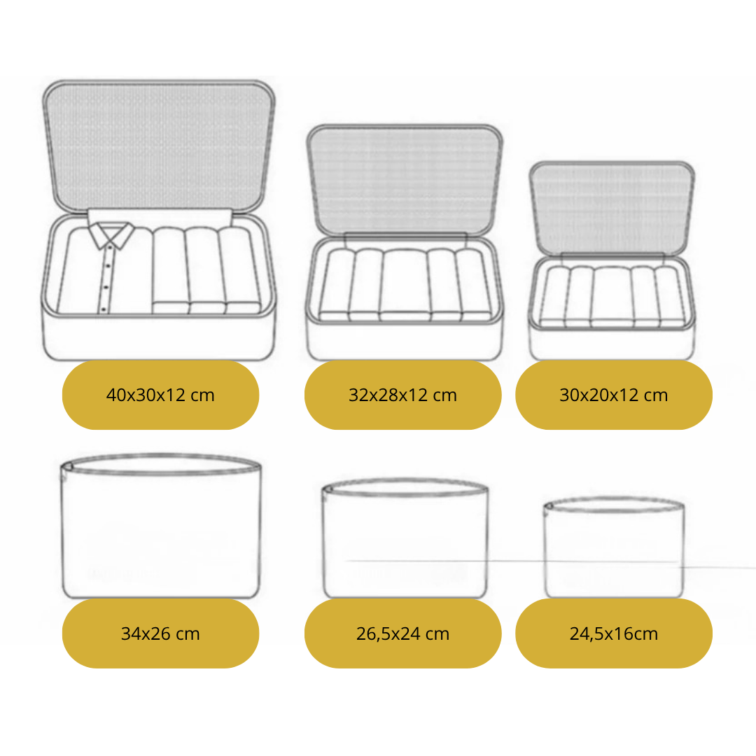 Deze slimme inpakblokjes brengen orde in de chaos. Ze helpen je je kleding, accessoires en toiletartikelen overzichtelijk te verdelen, zodat je nooit meer hoeft te graaien in een overvolle koffer. Alles heeft zijn eigen plek — netjes, zichtbaar, direct toegankelijk.